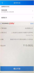 華爲Pay是銀聯和華爲針對華爲設備提供的移動支付服務。華爲Pay支持卡碼合一和推送綁卡,用戶可以通過華爲錢包綁定銀聯卡進行NF