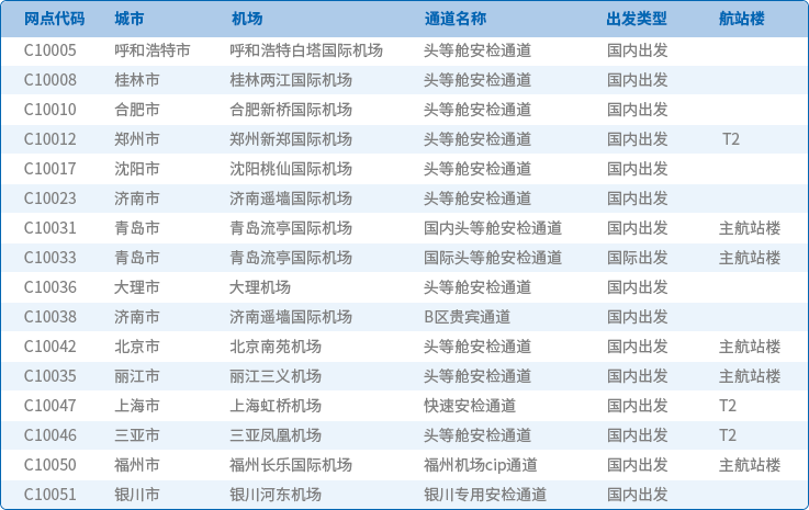 機場快速安檢通道列表