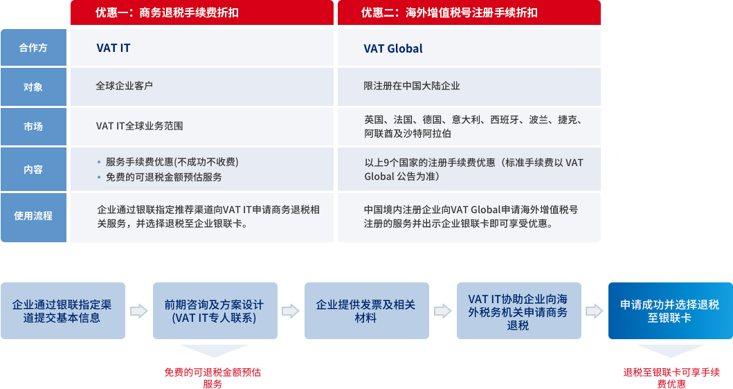 銀聯國際攜手VAT IT,向企業提供海外增值稅退稅服務,降低海外業務發展成本,實現退稅收益最大化。