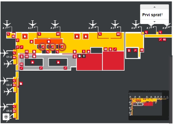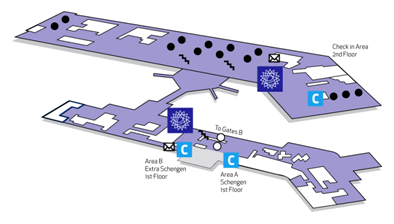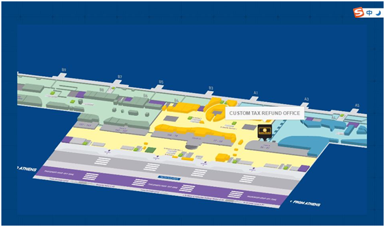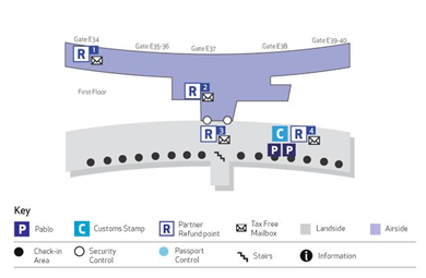 Locations of the Customs and Refund point at Larnaca International Airport:
