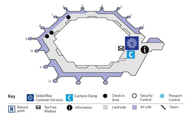 To get the tax refund by using Tax Refund Form issued by Global Blue or Global tax free, please present the Tax Refund Form to the Customs Inspection Counter for stamping and having purchased goods inspected.Note: No Customs stamp, no tax refund
