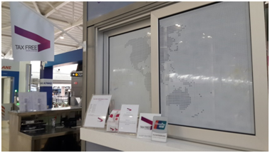 3. When you get to the left side of LV store near Gate 28 after stamping, you will see the Tax Refund Counters of the two tax refund companies (Global Tax Free and Global Blue) having cooperation with UnionPay, please put the Tax Refund Envelope into the mailbox.